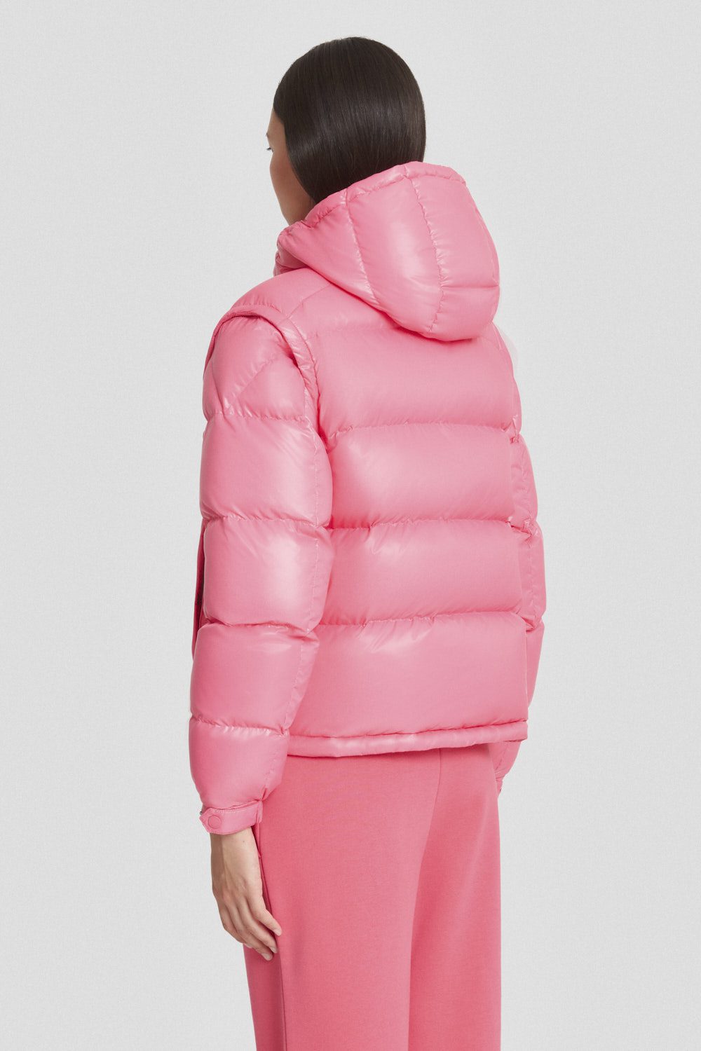 Piumino trapuntato fucsia da donna, dallo stile versatile e contemporaneo, imbottito in vera piuma 90/10 e realizzato in tessuto Lacqué 100% nylon, lucido e resistente.